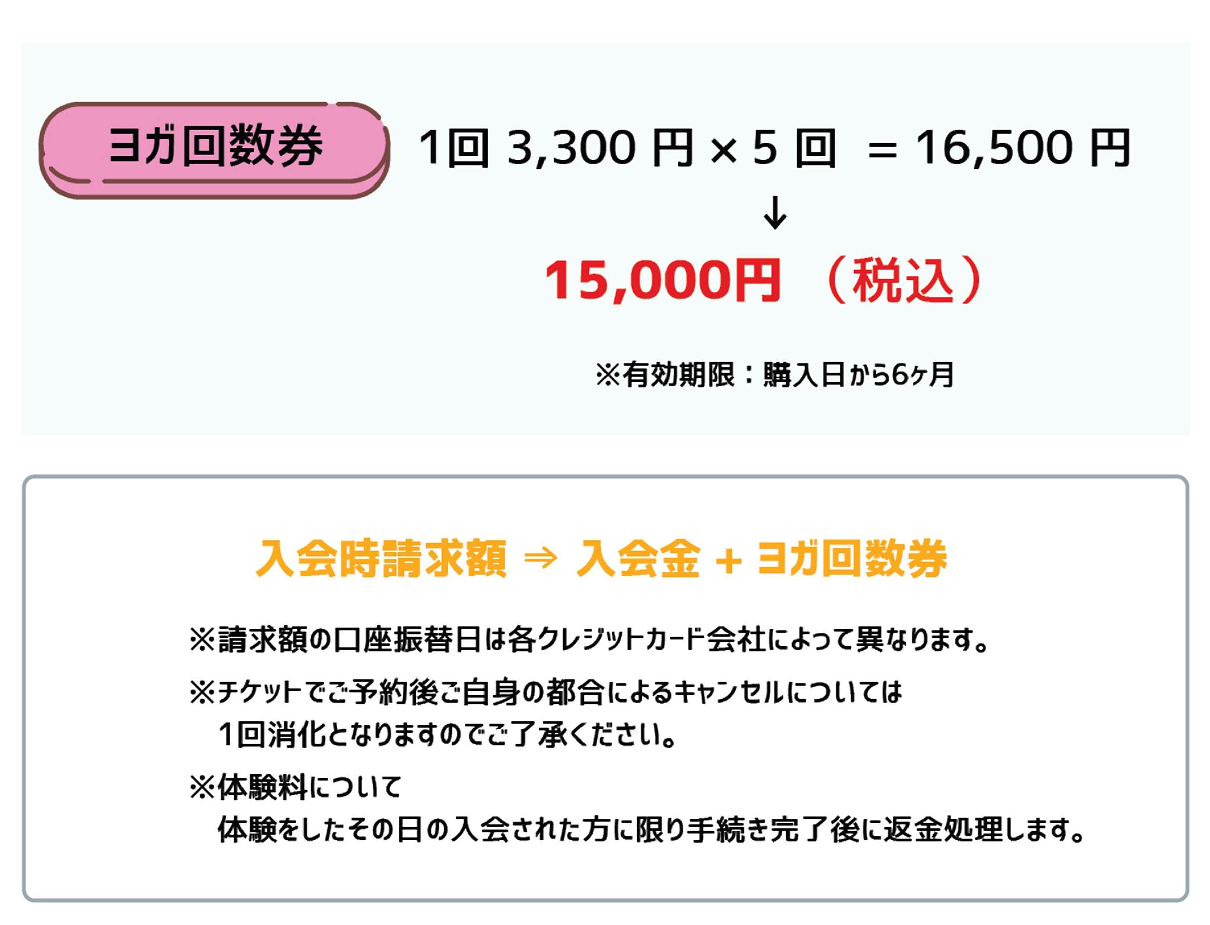 - 休会費0円。忙しい時は自由に無期限にお休みできます。(※「ヨガ回数券プラン」は対象外です)